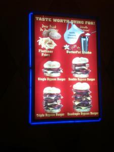 Oh, OK. Funny. We found it funny. It’s an amazing, in-your-face theme restaurant that’s totally upfront and honest about what it offers: Single, Double, Triple and Quadruple Bypass Burgers, Flatliner Fries (cooked in pure lard), and Butter-fat Shakes.