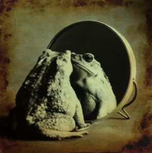 Both photos offer powerful imagery. Both carry exceedingly important messages about self image. But it’s the second one, the lowly toad who sees himself in the mirror, warts and all, that holds a deeper, richer message. Hands down.