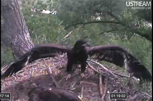 When eaglets reach a certain age, they begin to “wing-ercize,” hopping about with wings widespread. One day they catch a little draft and they’re hovering. It’s not long before one of those hovers propels them onto a nearby branch. The next thing you know, they fly into the world as juvenile eagles. There’s no more gazing from the nest watching as mom and dad soar. They’re out there with them.