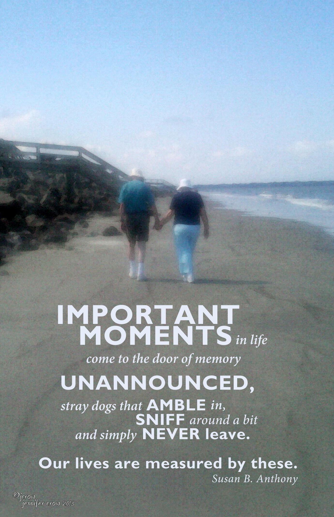 At the halfway point, my epiphany strikes: what the hell am I doing? Why am I killing myself for the sake of a workplace that might miss me if I walked off the edge, but only for a minute, after which someone else would step in to finish my projects and duties? Why am I pushing my anxiety higher, boosting my stress levels through the roof when I know – and, boy, do I KNOW – what’s really important in life?