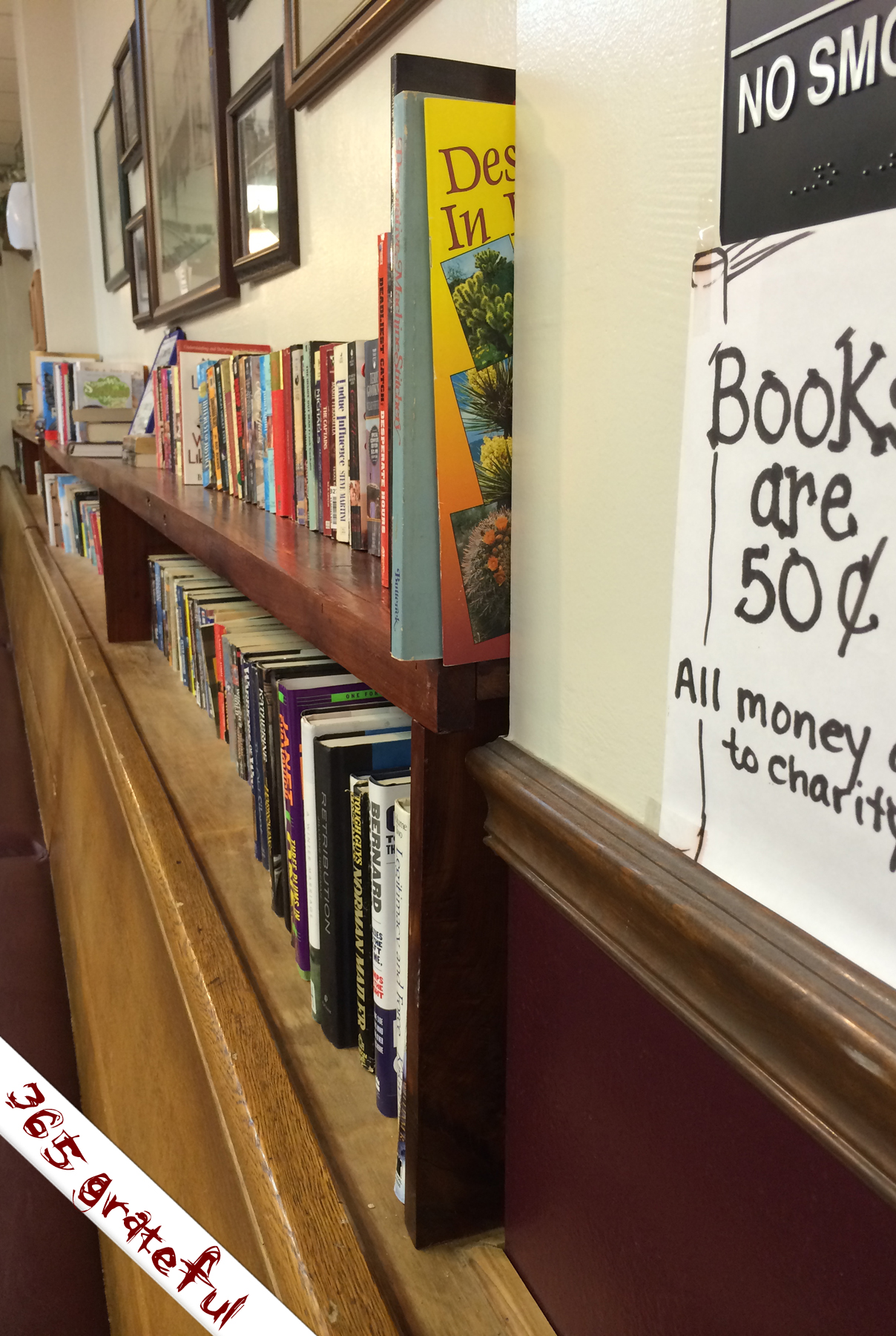I love books. So much that I hate to part with them. So today, I’m grateful for my personal “Cheers”-style diner, The Crystal Cafe. Good food, friendly people, and books. Yes, donated books they sell for 50 cents, which goes back to charity. What’s not to love? Except for the arduous task of deciding which beloved books stay or go. Grateful that they make the job a little easier for me. Exceptionally grateful for the community they foster.