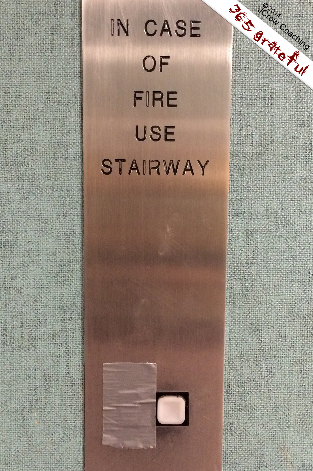365 Grateful: 05.30.2014 Posted on May 31, 2014May 30, 2014 by Jennifer Johnston Crow Posted in GratitudeTagged 365 Grateful, duct tape, elevator repairs, gratitude So incredibly grateful that our elevator maintenance (at least for the mechanical portions that haul it up, send it back down, and hold it in place) are NOT done with duct tape. Hmmm. Maybe that should read incredibly hopeful … 🙂 Share this: Click to share on Facebook (Opens in new window) Facebook Click to share on Pinterest (Opens in new window) Pinterest Click to share on X (Opens in new window) X Click to share on LinkedIn (Opens in new window) LinkedIn Click to share on WhatsApp (Opens in new window) WhatsApp More Click to print (Opens in new window) Print Click to email a link to a friend (Opens in new window) Email Click to share on Tumblr (Opens in new window) Tumblr Click to share on Reddit (Opens in new window) Reddit Click to share on Pocket (Opens in new window) Pocket Like Loading... Related