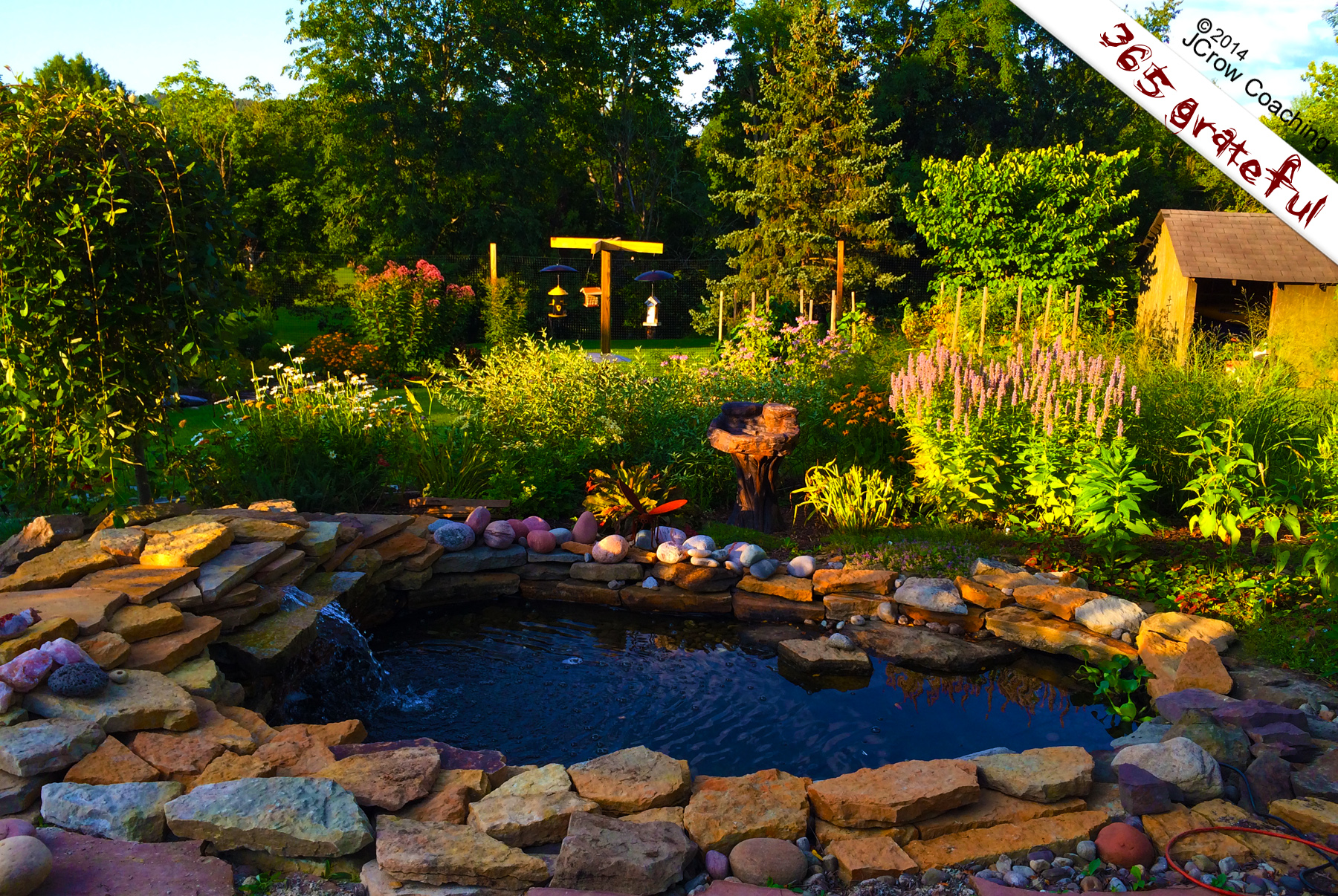 Close your eyes. Imagine sitting by a small pond, fed by a continuous cascade of water slipping down the rocks. You breathe in deeply — wildflowers share their fragrance, the herbs their savory goodness. You listen to the zzzzzipping of hummingbirds flitting from flower to flower and stopping to rest a moment on a branch.