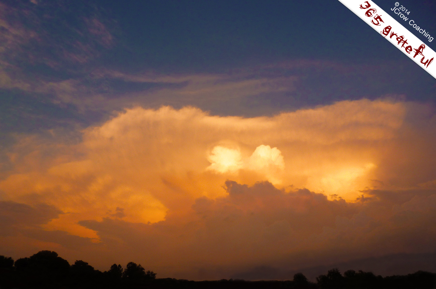 I stood in the parking lot at Kroger watching the clouds, then noticed the people scurrying from store to car and car to store. None of them glanced at the sky. No one’s step slowed for a moment. I’m not sure any of them even noticed the roiling, glowing, gorgeous sky. But I did, and I’m grateful for that, because what I took away was a powerful message of inner strength and purpose and passion. And that’s beautiful … maybe almost as beautiful as last night’s sky.