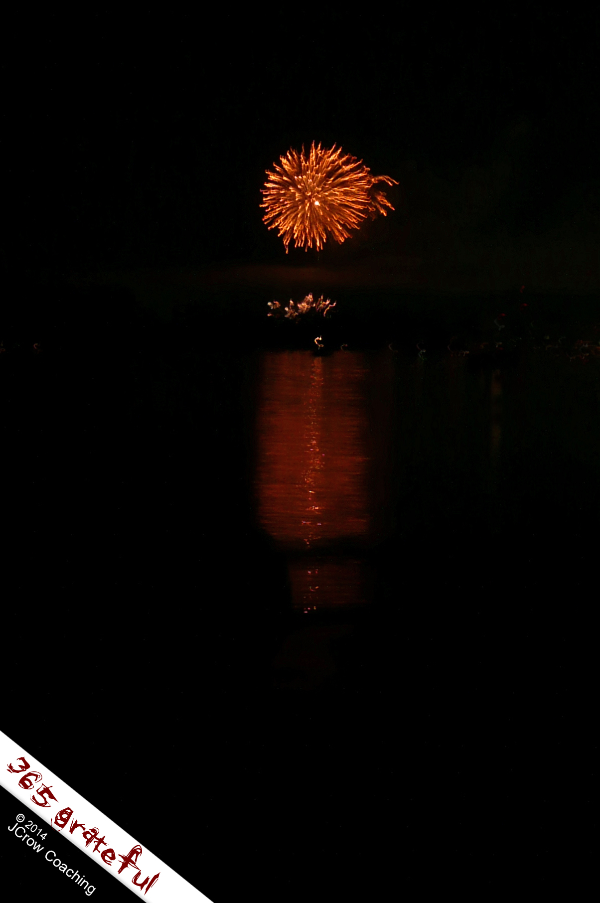 Fireworks have a fascination for many of us — the eyes can’t help but follow the arc of the projectile as it rockets into the air and then gaze in appreciation as it explodes into colors and shapes that slowly fade as the embers drop toward earth. But when you capture one, over water, you notice other things. Like the path it clearly outlines. It hardly matters whether that path leads to you or to the explosion of awesomeness; there’s meaning in both directions. Either it’s pointing the way toward you (Baby, you’re a firework!) or it’s leading you toward it (Come and let your colors burst!). Grateful for the reminder that we all have the potential to, as Katy Perry sings, “make ’em go, ‘oh, oh, oh!’ as you shoot across the sky-y-y!” Boom, baby.