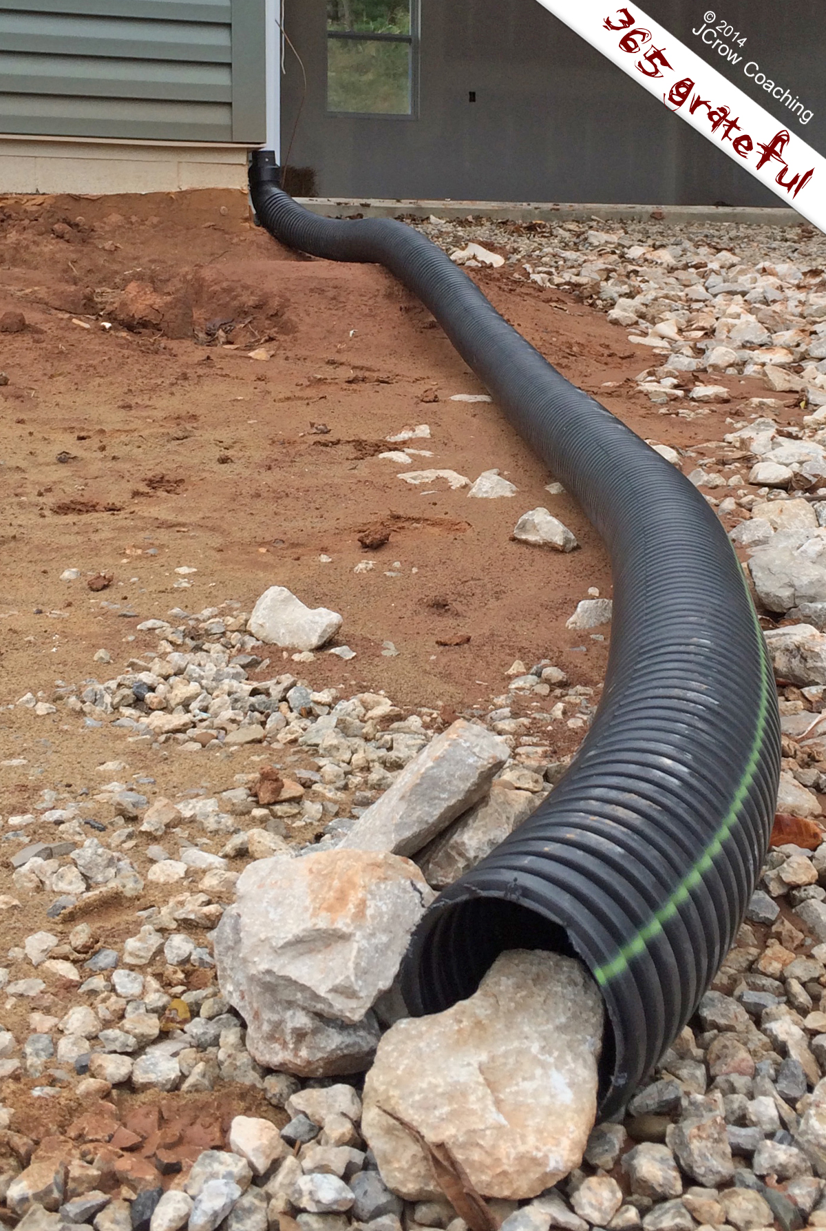 Consider the lowly drain pipe. It’s not very glamorous. In fact, it’s downright utilitarian, like shop lights in a garage. Function, not form. (You’re not interested in style, you’re interested in light. Or in this case, water. Or shedding it. But it serves a worthy purpose, this ferrying of water away from crucial things like houses and basements and risky foundations. It’s one of those taken-for-granted helpers.