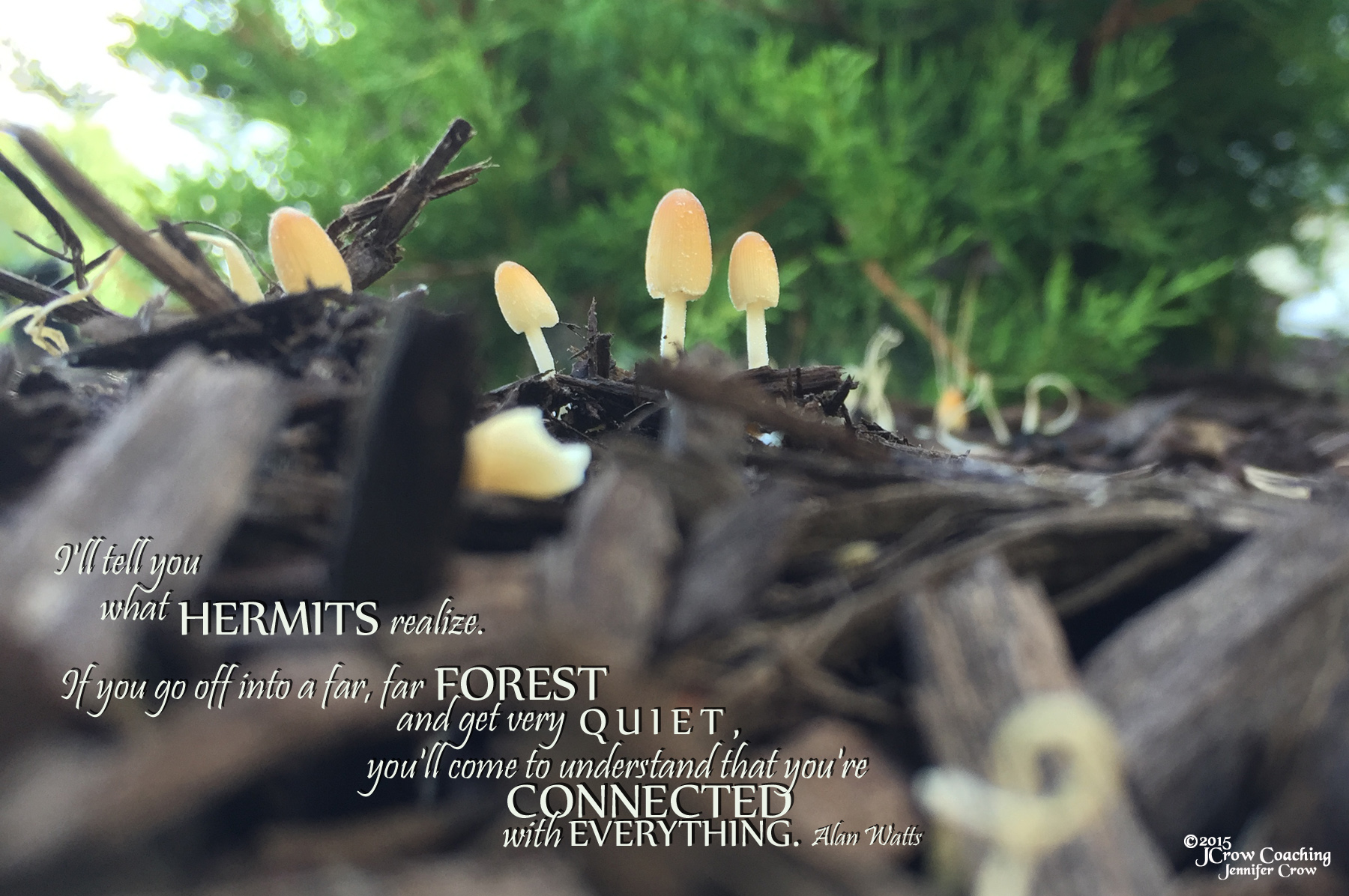 Grateful, then, for tiny toadstools living gloriously fleeting lives in the space of a day in my front garden bed of mulch. They make me realize that we exist in a symbiotic environment. I respect that. It’s a give and take kind of world, even when it seems so many of us prefer taking to giving most of the time. There’s still hope.