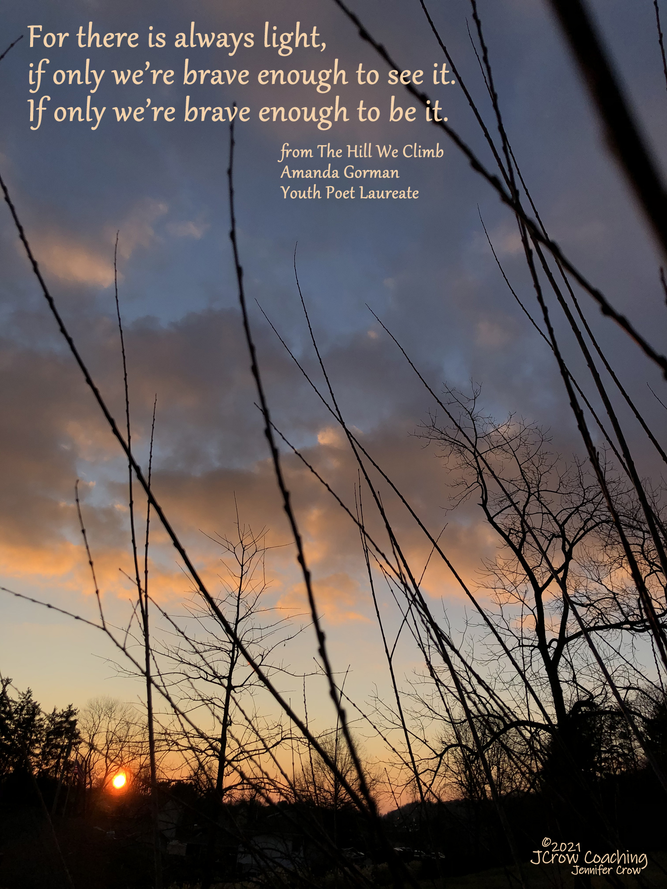 In the powerfully recited words of the Youth Poet Laureate Amanda Gorman was an invocation to the light, spoken in the midst of the shorter days and darkness of winter. Oh, there is always light.