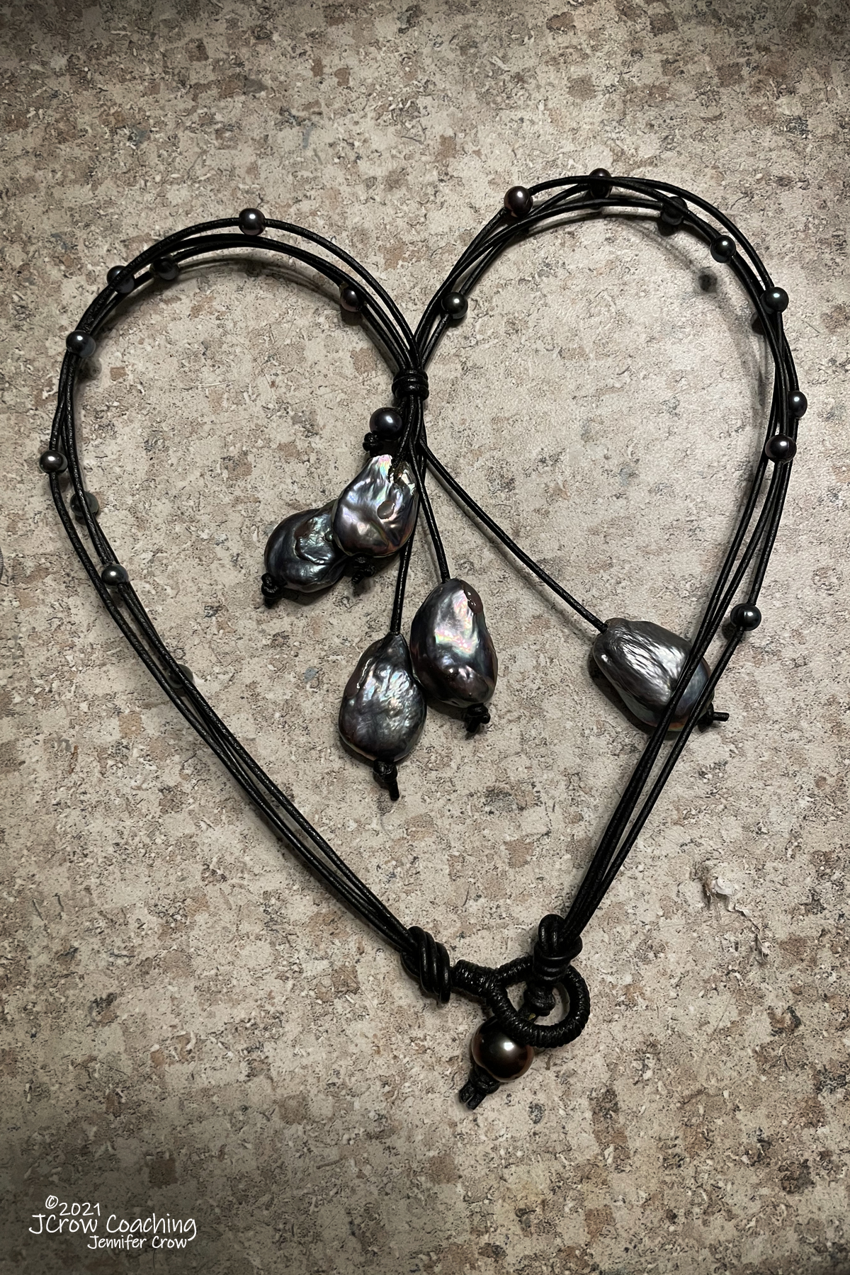 I see this: my pearls naturally arranged into a heart, which, believe me, I had not done purposefully yesterday. It’s just how they naturally landed.